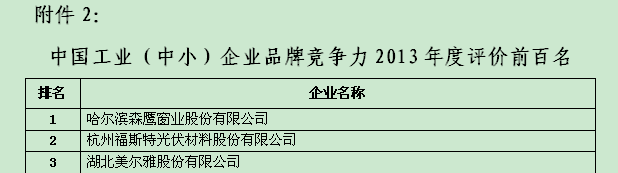 福斯特被評為“中國工業(中?。┢髽I品牌競爭力2013年度評價前百名”第二名