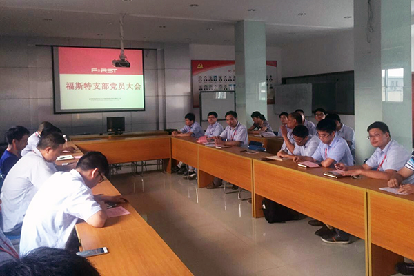 2016年8月15日,福斯特黨支部召開(kāi)黨員大會(huì),討論預(yù)備黨員陳建平、柴千根兩位同志的轉(zhuǎn)正事項(xiàng),會(huì)議由黨支部負(fù)責(zé)人邱米家主持,共45名黨員參加會(huì)議。